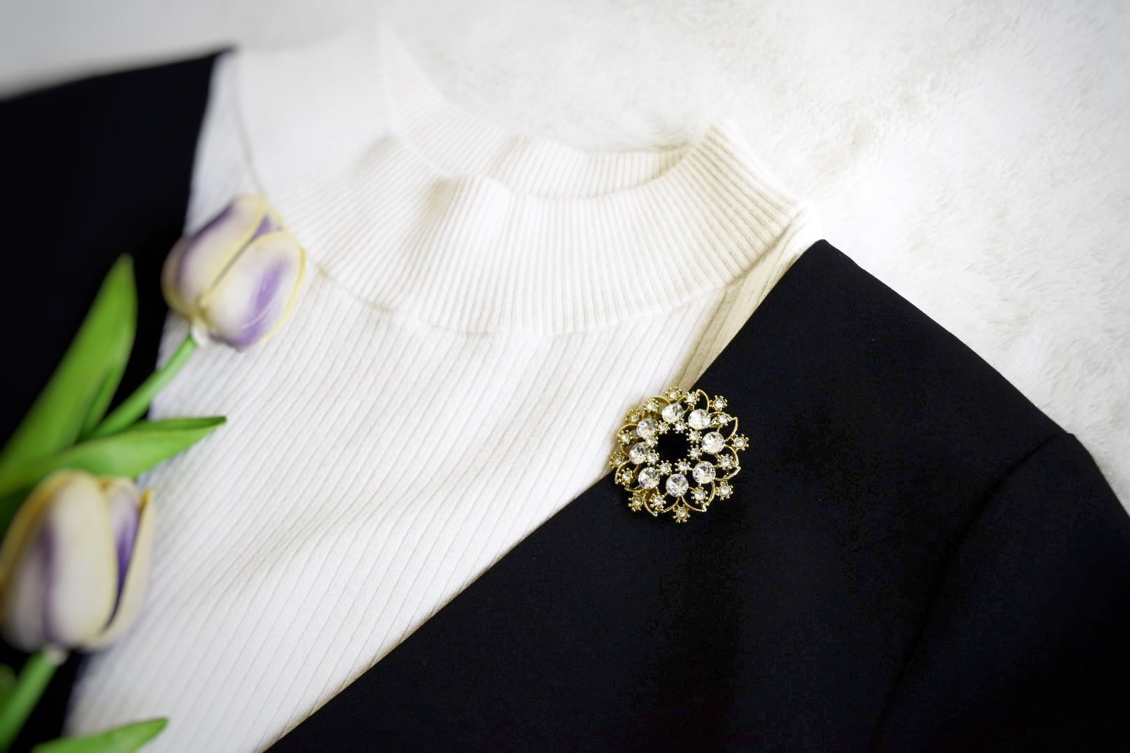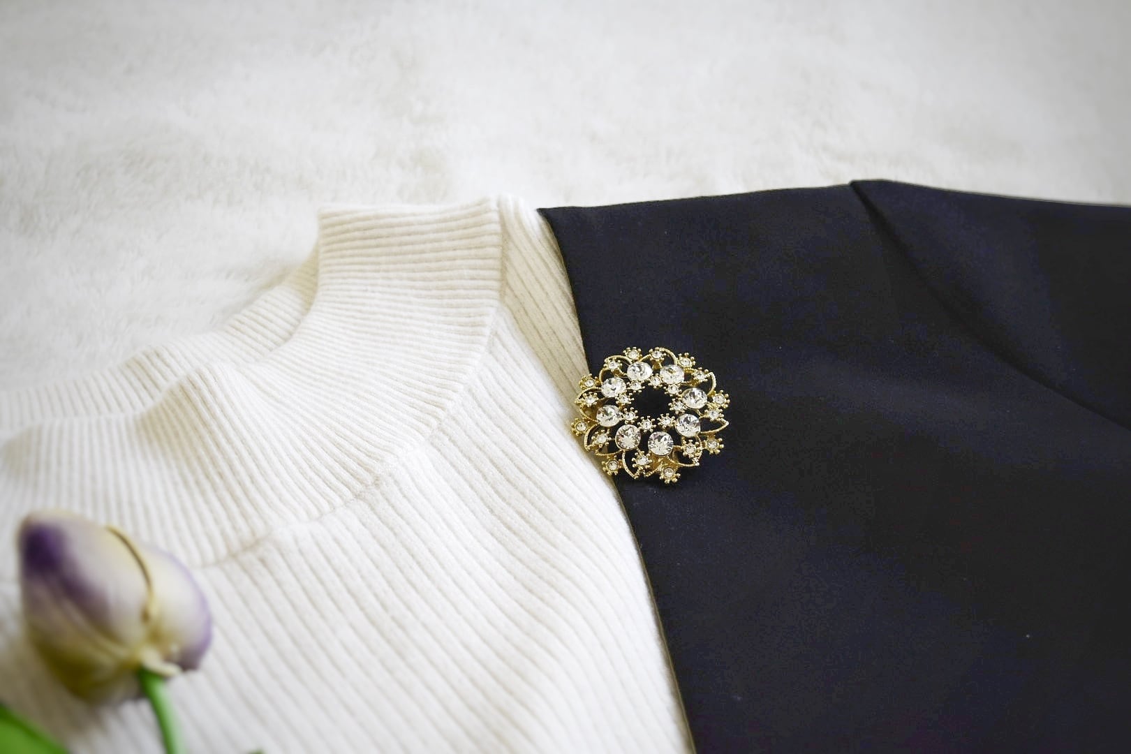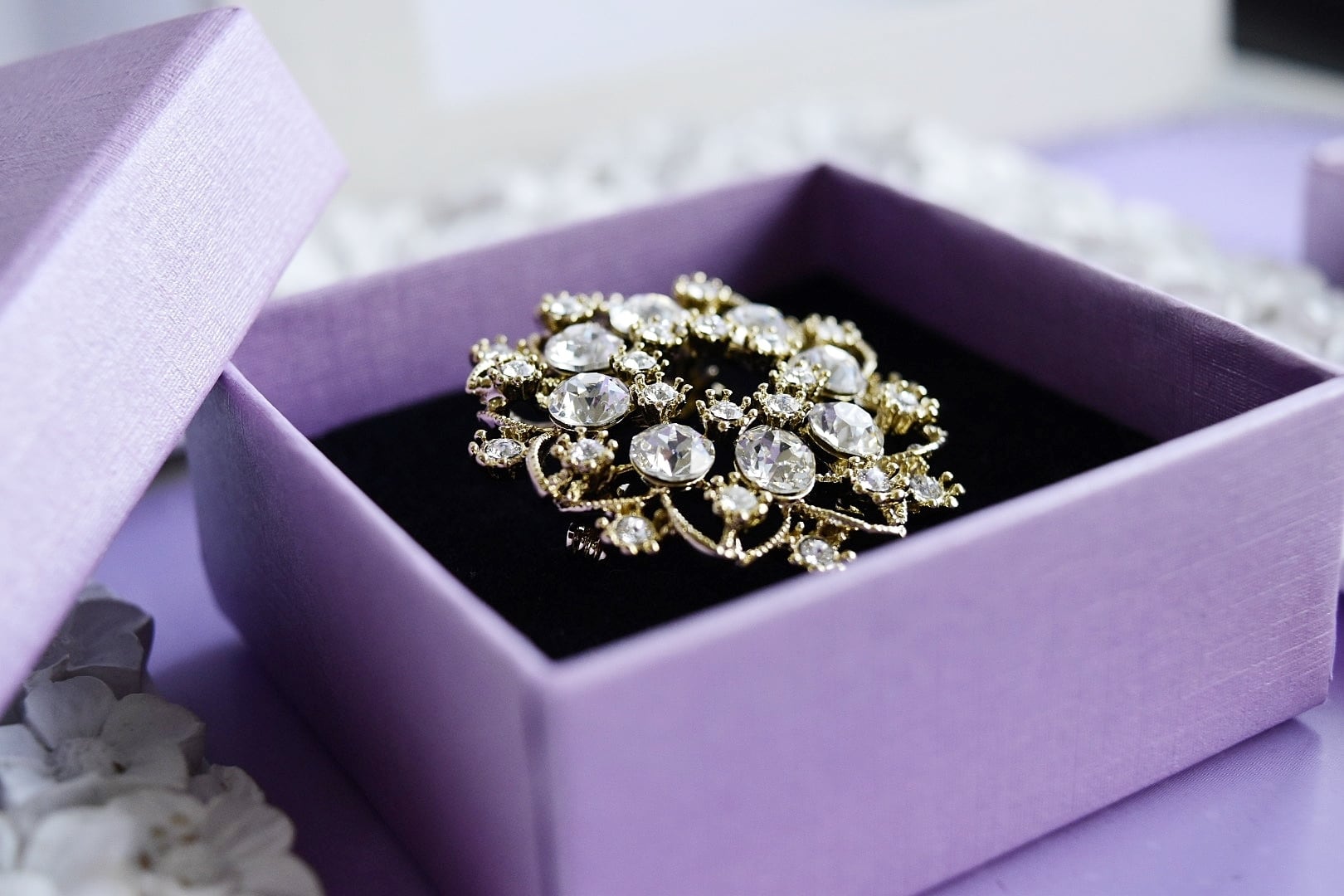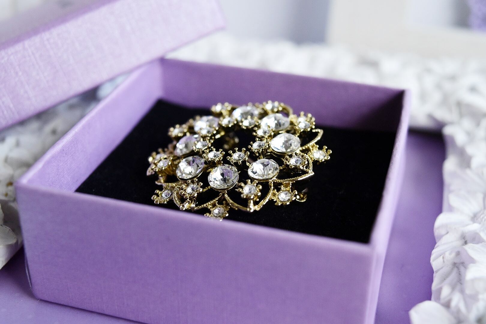 ◎置いても着けても見栄えがするキラキラブローチは