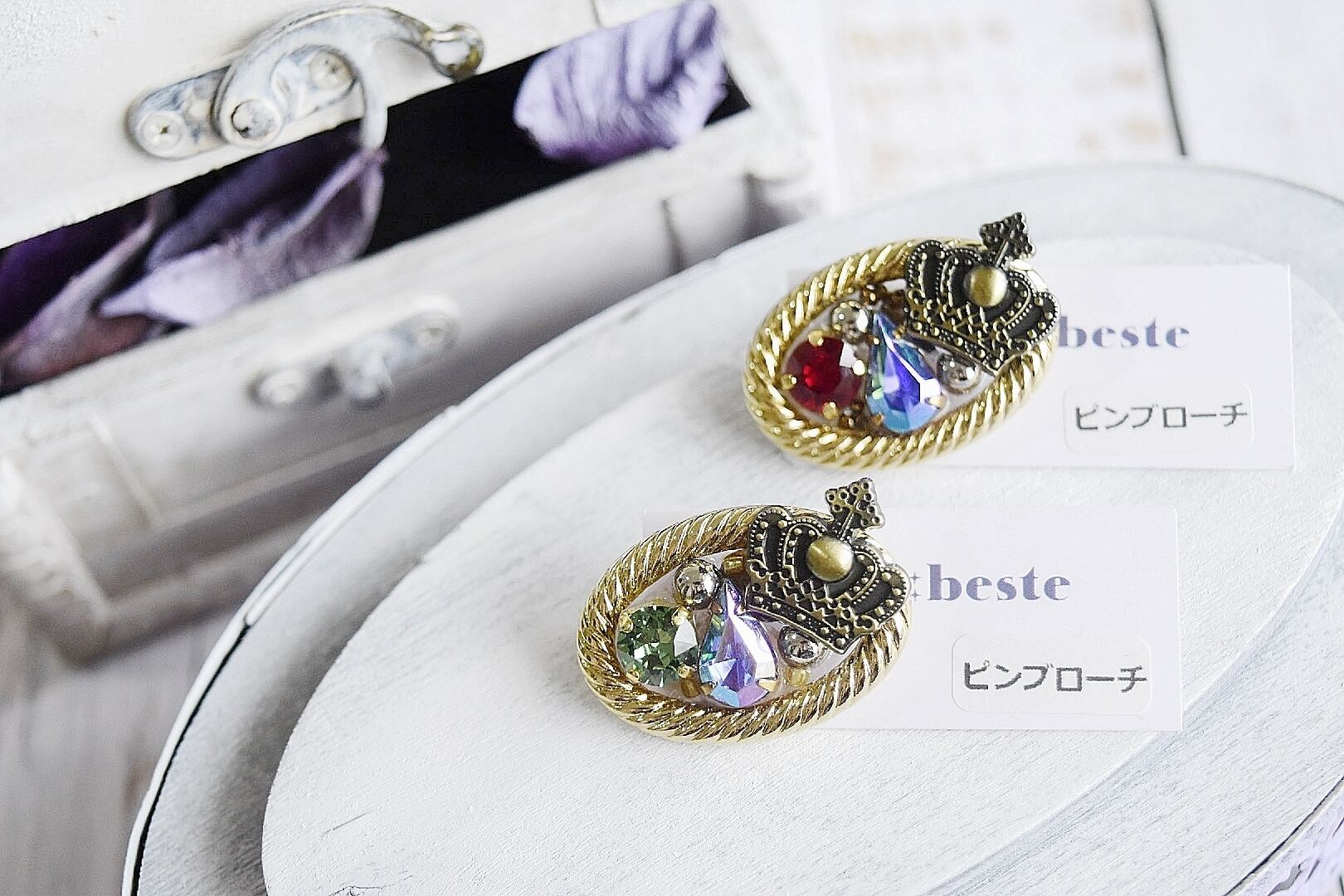 ・クラシカルな王冠モチーフがポイントのピンブローチ。ピンブローチにしては珍しい大きめサイズです。