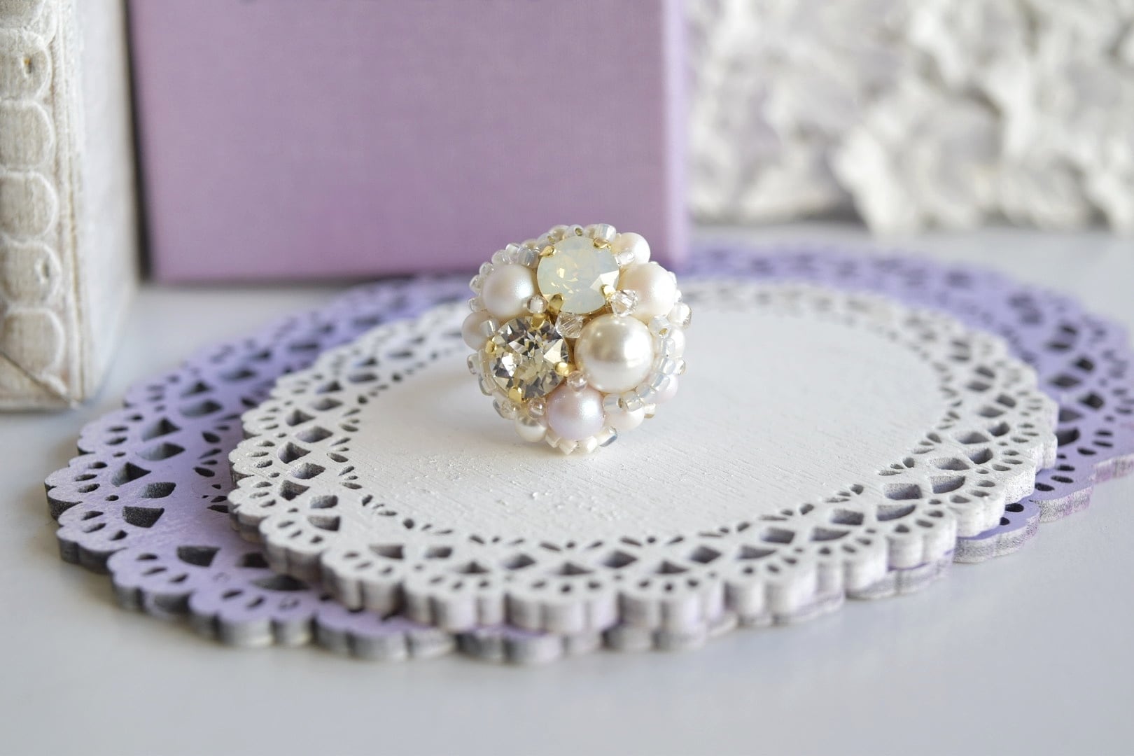 パールといっても一重にこの色と決まったものはありません。そのときそのとき出会うパールを、様々なホワイトを使うことで表現しました。6月の誕生石のパールデザインです。