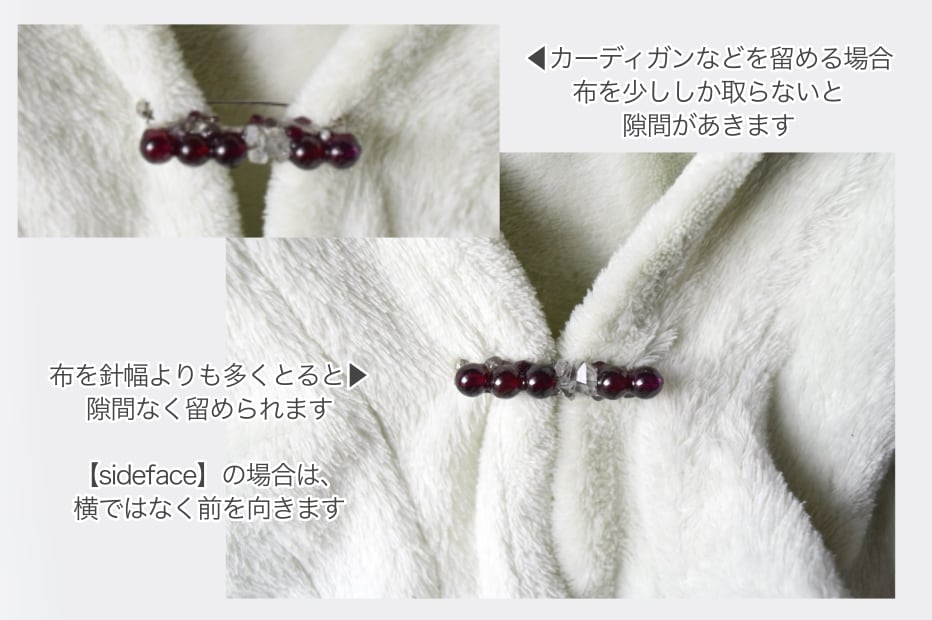 横向きに使うストールピンのようなデザインは、