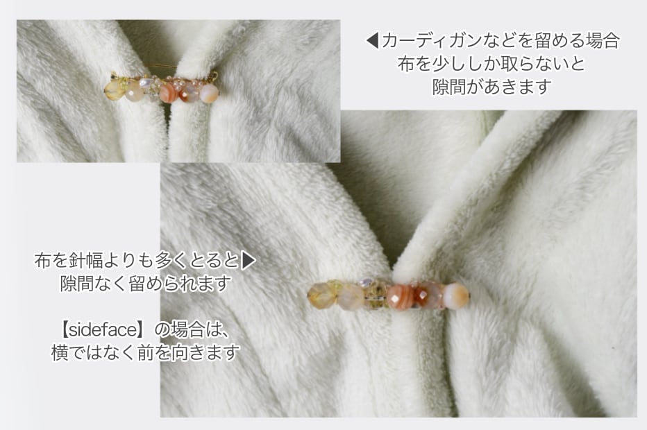 横向きに使うストールピンのようなデザインは、
