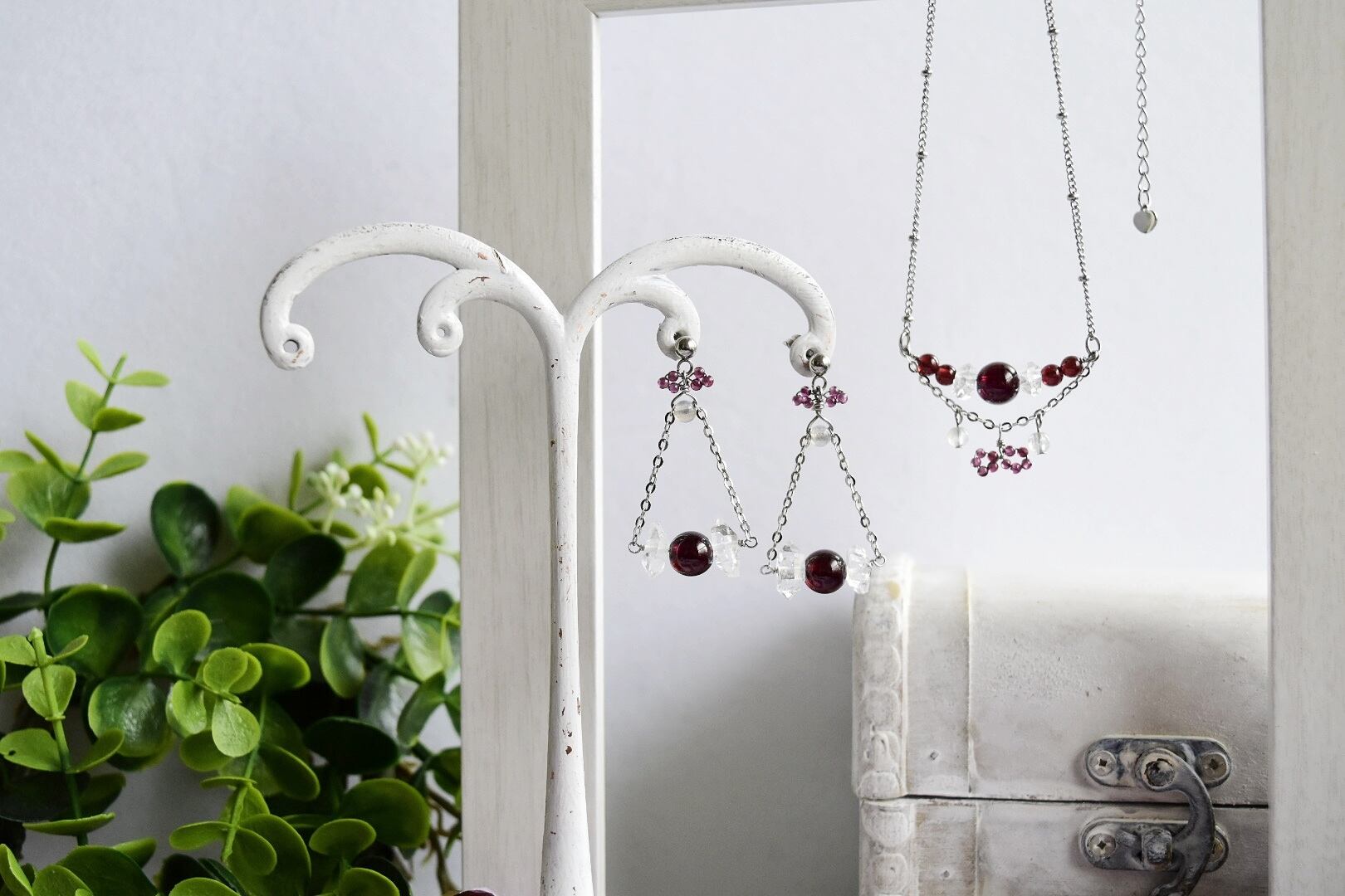 ・深みのあるガーネットと透明感のあるハーキマーダイヤモンドが美しくコラボレーション
