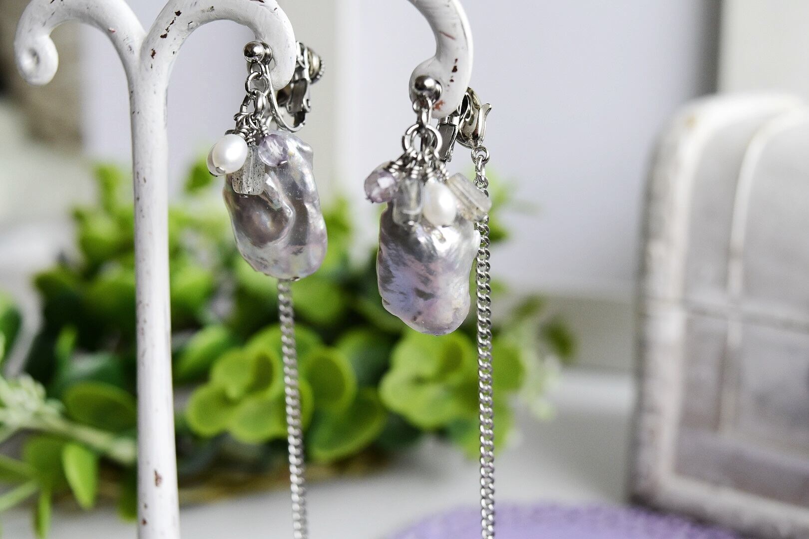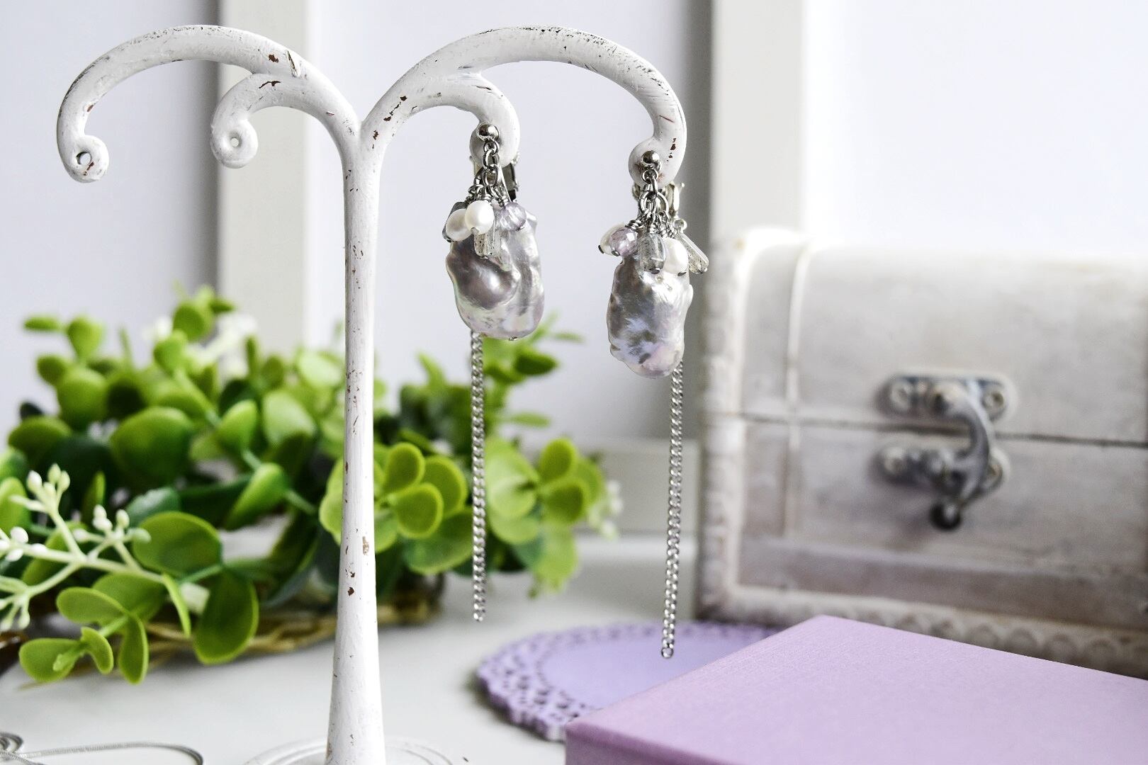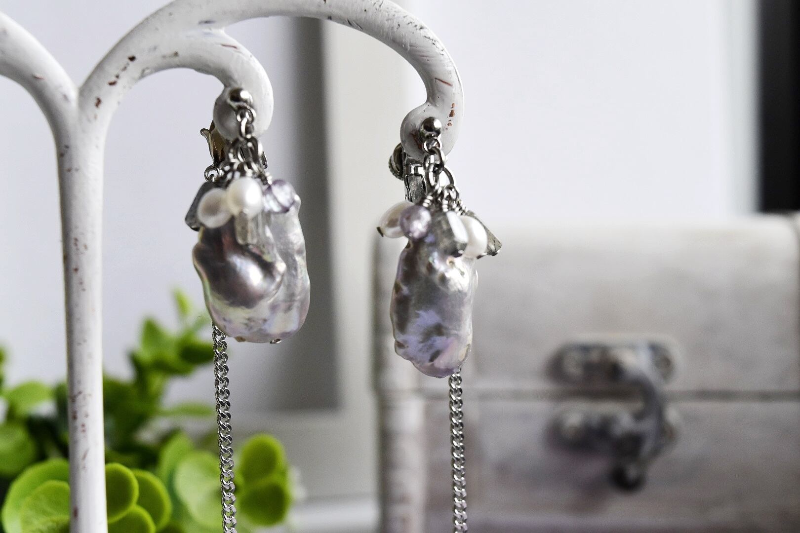 ・大振りなグレー淡水パールが揺れて、個性を上品に演出!