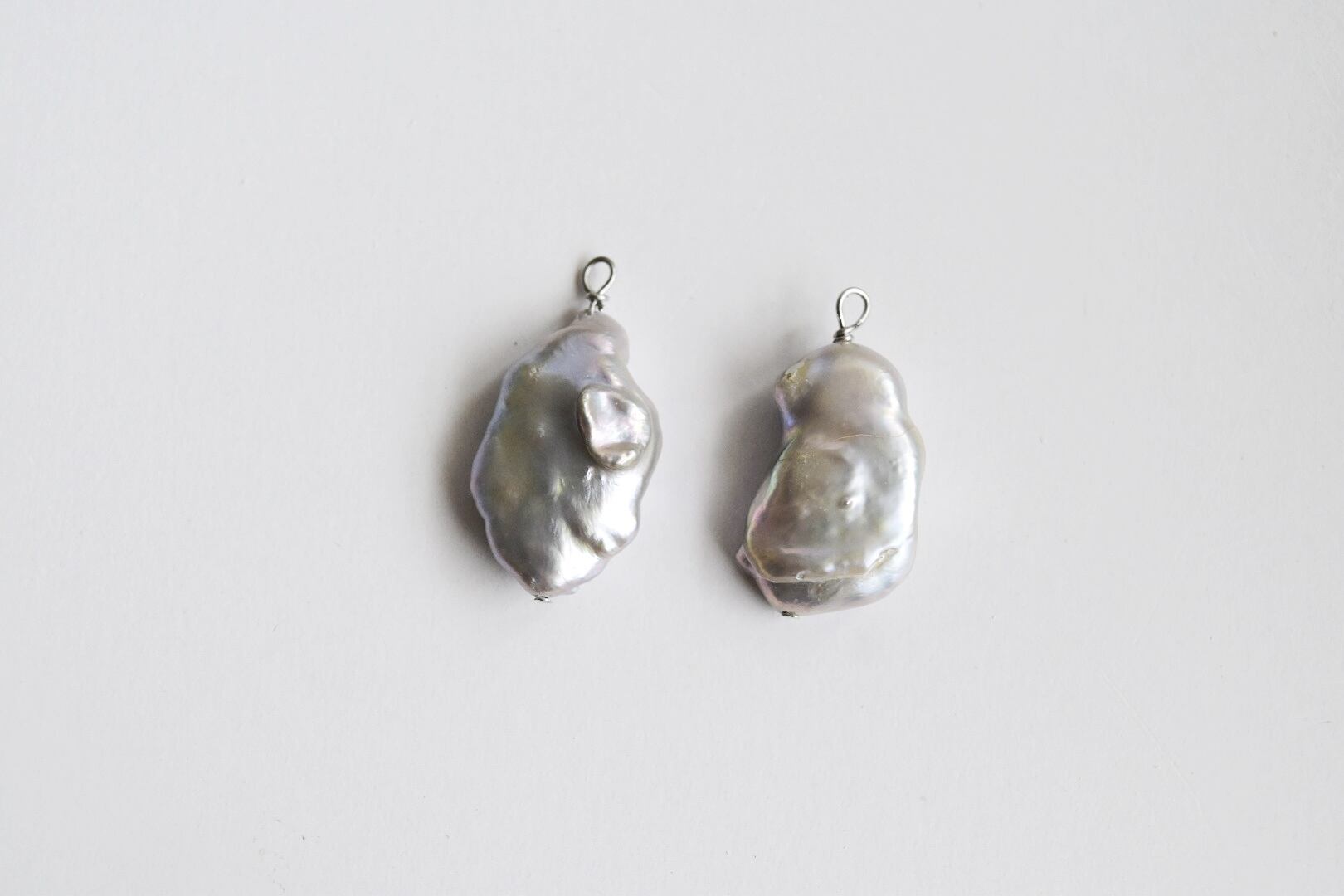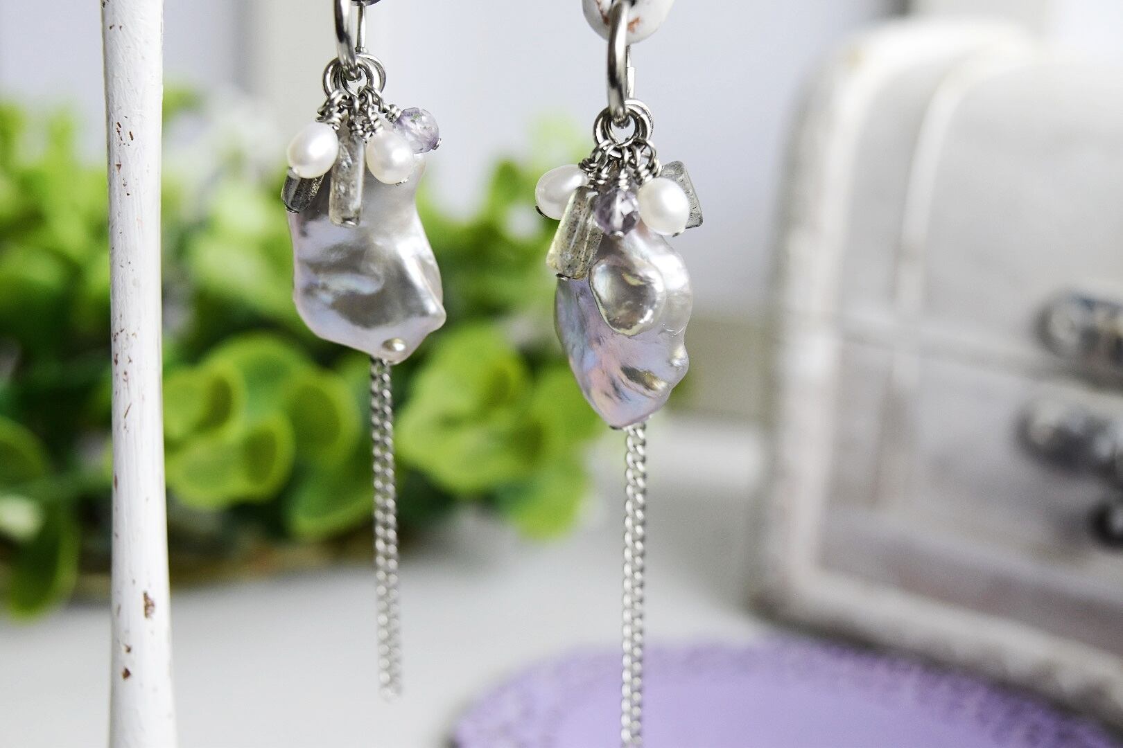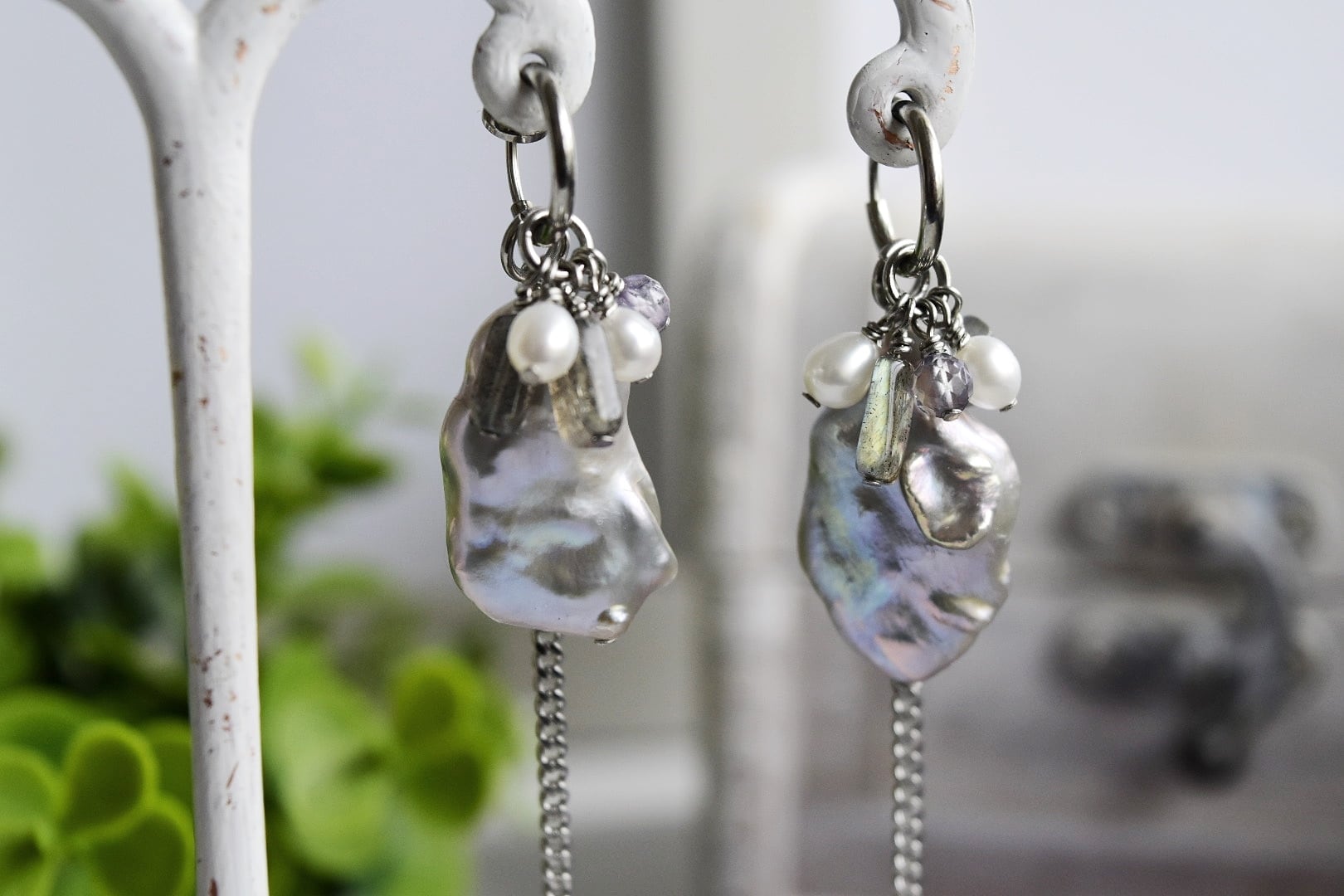・大振りなグレー淡水パールが揺れて、個性を上品に演出!